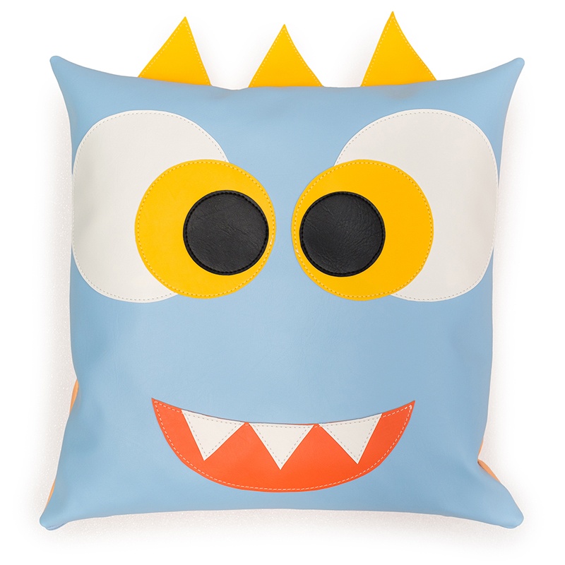 Almofada fabricada em tela lavável e impermeável e interior em espuma triturada.