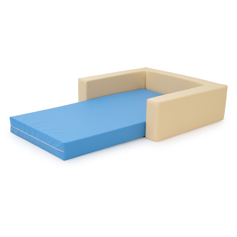 Materiais Peça fabricadas em espuma de poliuretano de 23kg/m3, revestida com tela PVC impermeável, lavável, com tratamento ignífugo M2, isenta de ftalatos, ou de produtos nocivos para a saúde das crianças, respeitando as normas europeias de segurança.
